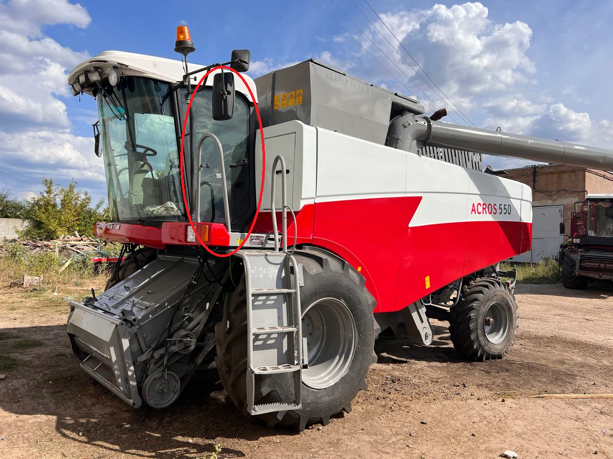 Стекло левой двери Acros 550 Стекло левой двери комбайн Acros 550, оригинал, сталинит, 8 отверстий Ростсельмаш